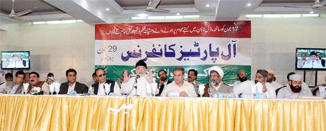 Opening the conference Pakistan Awami Tehreek (PAT) chief Dr Tahhirul Qadri thanked all the parties participating in the conference.